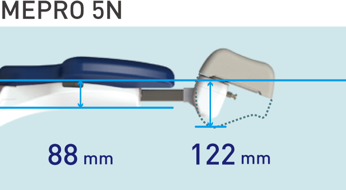 In addition, MEPRO 5N has a motorized headrest elevation and tilt mechanism, making the backrest and headrest thinner than our previous products. This further reduces knee interference during the procedure. The slim and flat backrest provides a more comfortable surgical posture.